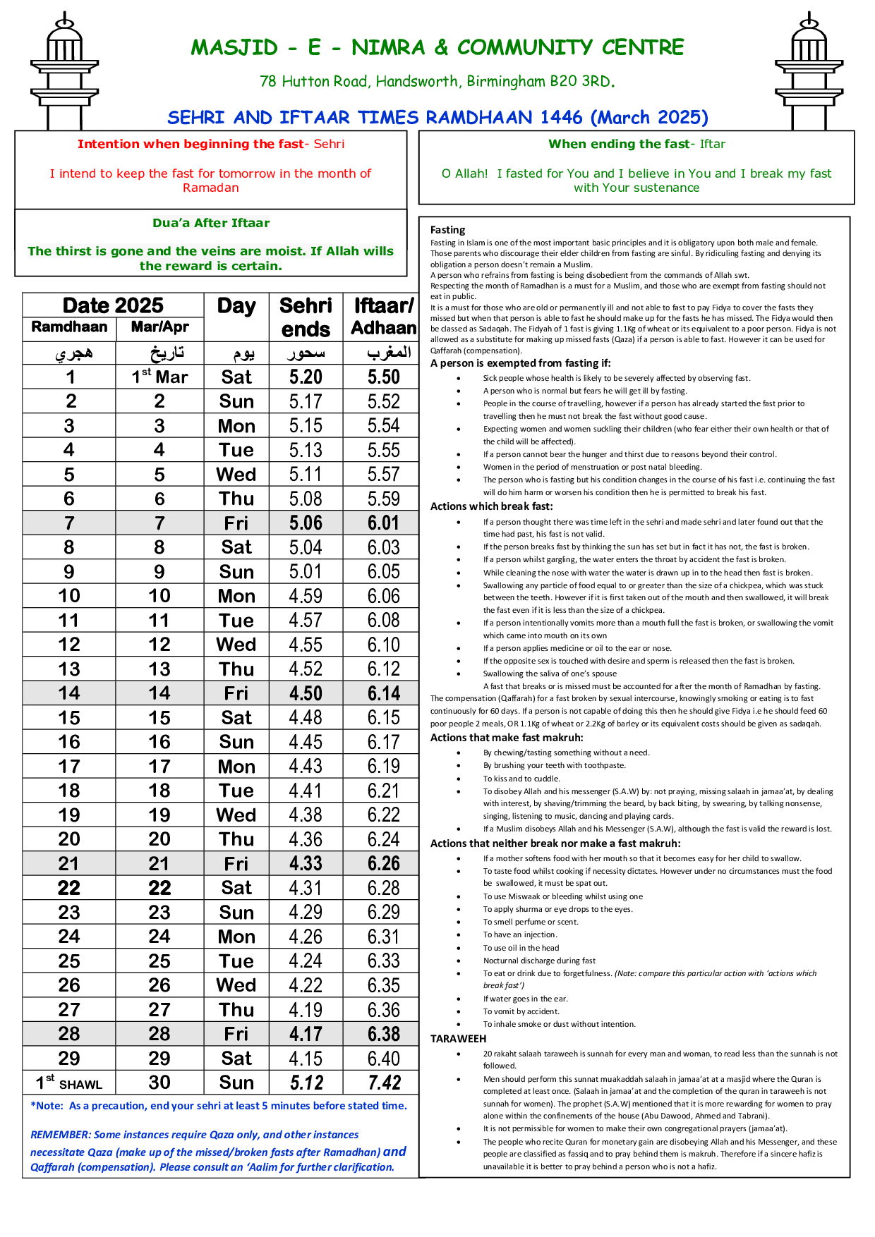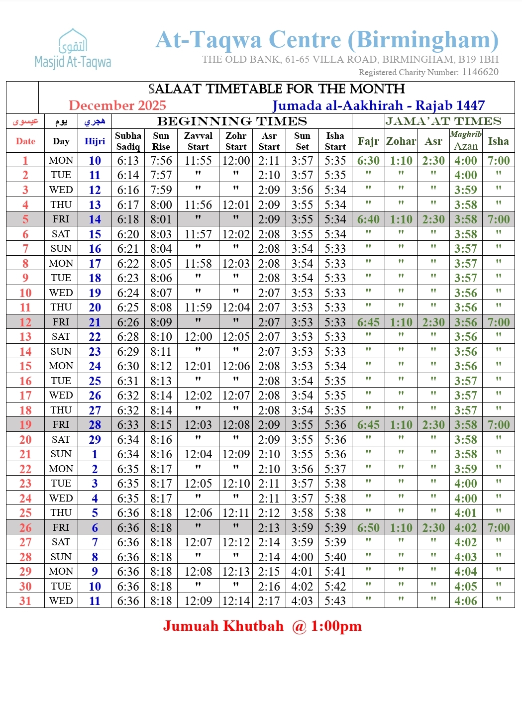 Taqwa Centre Villa Rd